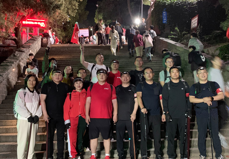 從山下到中天門,從南天門到玉皇頂,1545米海拔、6600余級(jí)臺(tái)階、8.2公里路程,鵬鴻人把不畏艱險(xiǎn)、團(tuán)結(jié)協(xié)作、勇攀高峰的精神鐫刻在泰山之巔。