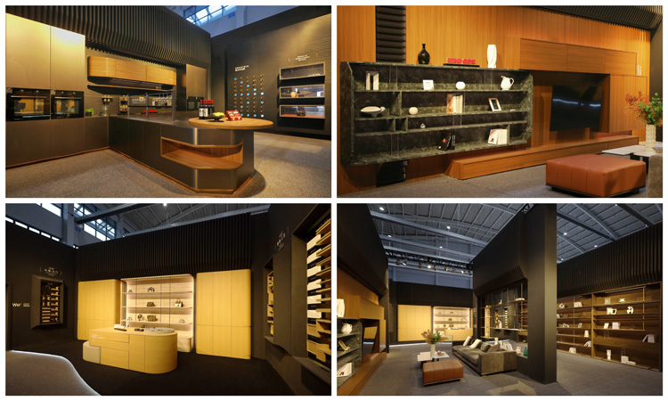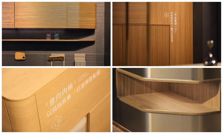 45度斜切結(jié)構(gòu)、骨骼線條、弧形元素、ABA板材工藝……多元美學(xué)融合,呈現(xiàn)全新家居意境。應(yīng)用上,ENF級(jí)環(huán)保,4.5米通頂家居,傳奇系列板材、第三代顆粒板、碳晶飾面板……為與會(huì)觀眾帶來(lái)高顏值、高個(gè)性化、高品質(zhì)的整家美學(xué)方案。